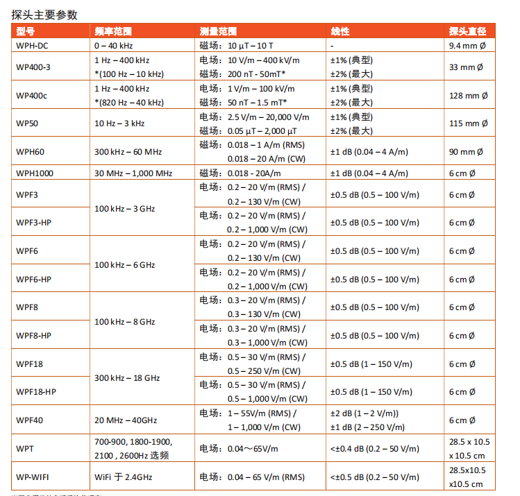 三合一場計:頻譜分析(DC – 400 kHz),寬帶(DC – 40 GHz)和靜態場測量。